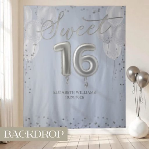 Convites Silver Foil Sweet 16 Birthday Balloons Party Blue