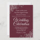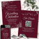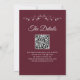 Este belo convite de casamento é na moda, simples e elegante. Ele apresenta uma letra pálida de cinza prateada em um fundo cor de borboleta, marrom ou vinho com filtro de folha de papel prateada em cada canto. A design subestimada é compensada pelas ampolas e espirais do trabalho de arte. A parte traseira tem um código QR personalizável e uma nota de detalhes para que você possa direcionar seus convidados para um site para informações e RSVP.