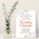 Convide seus convidados para compartilhar suas comemorações do casamento com esses convites elegantes. Apresenta texto elegante de roteiro de terracotta laranja e cinza sobre fundo branco com filigre de folha azul prateada nos cantos. Design simples com palavras formais para tornar seu casamento realmente especial.