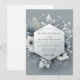 Embrace a cool and elegant aesthetic with this stunning artistic arrangement. A sophisticated monochromatic palette of slate blue, silver, and crisp white creates a serene wintry atmosphere. This design features a lush bouquet of detailed white blooms and frosted foliage with shimmering silver accents. Perfect for a chic union with timeless grace.