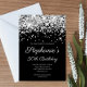 Crie o seu próprio convite para comemoração de aniversário de um marco de na moda para ela. Essa amostra é configurada para 50 anos, mas pode ser personalizada. A parte superior do convite contém gráficos decorativos de cor esbranquiçada e cintilante prateada sobre preto sólido. Os brilhos, brilhos e brilhos do luxo serão criados por elementos artísticos que impressão gostam de uma foto. Você pode personalizar a elegante caligrafia e estilos e cores de fontes.