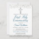 Silver Glitter Cross Script Primeiro Convite Comunitário Sagrado