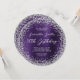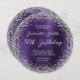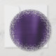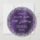Um glamouroso aniversário de 50 anos com um design circular falso cintilante prateado para ajustado dos convites circulares. O design apresenta uma cobertura brilhante prateada contra uma imagem gráfica de folha metálica violeta violeta roxa brilhante e fina e coordenada. Os efeitos de brilho e brilho são criados com trabalho de arte neste design de vidro feminino moderno, e vai impressão no seu convite como uma foto faria.