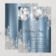 Convites Silver Glitter Drips Balloons Blue Metallic 75th