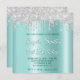 Convites Silver Glitter Drips Light Teal Ombre Drop Shadow