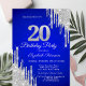 Convites Silver Glitter Drips Royal Blue 20th Birthday