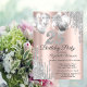Um moderno, chique e glamouroso com gotas de luz prateada, e balões sobre um fundo rosa de ouro.