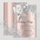 Um moderno, chique e glamouroso com gotas de luz prateada, e balões sobre um fundo rosa de ouro.