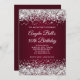 Um convite elegante de 50 anos, 5 x 7, para ela. Brilhante de prata com brilhos contra uma imagem gráfica digital de gradiente ombre burgundy. Todos os elementos brilhantes da tolice nesta design de menina moderna são gráficos digitais que impressão gostam de uma foto.