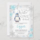 Silver Glitter Penguin Winter Onederland Birthday Invitation Sweet faux prata glitter e o pinguim azul e branco do garoto floral em um derland convite para o aniversário para se estabelecer a cena de uma primeira festa de aniversário do tema do inverno. O convite de aniversário de um derland deste garoto apresenta um falso título de prata e flocos de neve.
