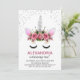 Convites Silver Glitter Unicorn Princess Birthday
