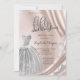 Vestido elegante de prata, saltos altos, vidro de vinho e balões no fundo de ouro rosa.