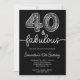 Crie sua própria cinza de prata e convite para comemoração de aniversário negra para ela. A tipografia apresenta texto falso no estilo do balão de impressão de folha de alumínio prateada e a palavra fabulosa com balanços decorativos. Os elementos do balão metálico de folha metálica da cinza são criados por elementos artísticos que impressão gostam de uma foto.