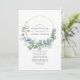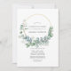 Silêncio sobre o eucalipto da floresta Celebração do convite Life com quadro geométrico dourado e lavagem com aquarela prateada invertida personalizável para suas especificidades de evento.