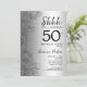 Silver Surpresa 50º Convite de aniversário. Design Glam feminina com sotaques botânicos e letra de script de tipografia. Simples cartão de convite floral perfeito para uma festa surpresa na moda. Pode ser personalizado para qualquer idade. Impressos convites Zazzle ou modelo de impressão digital instantânea para download.