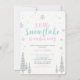 Celebre um dia especial para seu amado com este belo convite da terra maravilhosa do inverno! Este design apresenta flocos de neve com brilho prateado com uma bela frase "Um floco de neve está a caminho". Um convite perfeito para o chá de fraldas do tema do inverno ou para a aspersão de bebês.