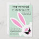 Um coelhinho gordo, branco, de orelha longa e alegre pendura de cabeça para baixo deste convite deliciosamente colorido. Ele não pode ficar quieto. Ele está por toda parte. Fazendo compras em todos os lugares, em todas as direções. Veja se você pode pegar o coelhinho da Páscoa quando ele esconde todos os ovos cheios de doces para você e todas as crianças pequenas. Neste doce convite você pode personalizar o texto de ambos os lados.