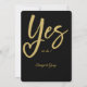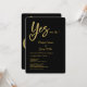 Sim, fazemos convite Dourado ao casamento Negro Este elegante design de casamento preto e dourado mostra a frase "Sim, nós fazemos!" com a palavra "Sim" escrita num roteiro romântico de ouro — o Y brilhante incorpora inteligentemente uma forma cardíaca, simbolizando amor e unidade. O layout mínimo de chic combina a ousada tipografia moderna com sotaques de ouro eterno, criando um aspecto luxuoso perfeito para eventos formais, celebrações de gravatas negras ou casamentos noturnos. Os nomes são exibidos em caligrafia graciosa, adicionando um toque de encanto pessoal a este material sofisticado de papelaria. Esta design faz parte de uma coleção de casamento personalizável e foi cuidadosamente criada com a ajuda da IA para apoiar a criatividade. Eu posso ganhar uma pequena comissão através de compras feitas através de links de referência de mídias sociais.