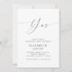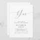 Celebre seu amor com este convite moderno de festa de noivado branca, com um roteiro de na moda "Sim", layout limpo e tipografia moderna. Perfeito para uma comemoração chica e minimalista, este design dá um tom sofisticado para o seu evento. Totalmente personalizável com seus nomes, data e detalhes da festa — ideal para casais que adoram artigos elegantes e modernos com uma reviravolta de na moda.