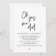 Elegantemente anuncie sua alegria para sempre com nosso moderno tema preto e branco carta de convite para celebração de elopementos de casamento, "Oh Sim Nós Fizemos", bar de dinheiro só adulto. Personalizado para casais continuando sua história de amor, este convite atinge um equilíbrio perfeito de sofisticação e charme, estabelecendo a cena de um evento inesquecível. Com um moderno design de roteiro contemporâneo, ele adiciona um toque de graça eterno ao seu dia especial. Projetado pelo talentoso TeeshaDerrick, este convite é uma expressão na moda do seu amor duradouro.