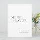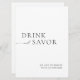 Uma forma na moda de convidar convidados para comemorar, saborear e desfrutar da celebração. Este bar minimalista apresenta um design branco e preto limpo que se junta facilmente ao decor de casamento contemporâneo ou elegante. Um detalhe sutil, mas polido, que eleva sua estação de bebidas com encanto moderno. Totalmente personalizável para se adequar ao seu evento. Coordena-se com a suíte de casamento "Elena" do cheio — explore a coleção completa para sinais correspondentes, cartões RSVP, menus, programas e muito mais.