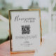 Sinais de casamento de lua de mel de caligrafia elegante com código QR - uma forma moderna e na moda para os hóspedes enviarem presentes em dinheiro ou desejos de lua de mel. Mesa perfeita para casais que querem um design simples e elegante.