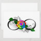símbolo de infinito com rosa arco-íris em um fundo branco.