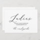 Este delicado sinal de casa de banho de senhoras da caligrafia negra é perfeito para um casamento moderno. A design romântica minimalista apresenta uma magnífica e elegante tipografia negra num fundo branco com um aspecto simples e limpo. O cartaz diz "senhoras, por favor, ajudem-se a elogiar os recém-casados".