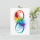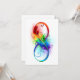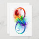 Símbolo infinito desenhado artificialmente com uma bela pena arco-íris sobre fundo branco. Tatuagem.