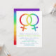Convite de casamento lésbica vibrante e elegante em cores do arco-íris com dois símbolos venosos.