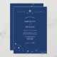 Invite your guests to a night of romance and starlight with this Simple Celestial Elegant Blue Wedding Details and Invitation from the Celestial Elegant Wedding Collection. Featuring a deep navy blue background adorned with twinkling stars and refined typography, this modern celestial design is perfect for couples who love a minimalist yet luxurious aesthetic. Easily personalize with your names, wedding date, and venue details for a fully customized touch. Ideal for celestial weddings, winter celebrations, or elegant evening receptions. Pair it with matching RSVP cards, programs, menus, and signage for a cohesive wedding suite.