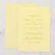 This wedding invitation features a soft butter yellow background with a clean and modern layout. The design is simple and chic, using clear typography for an elegant touch. The minimalist style creates a fresh and warm look for spring and summer weddings. All text is easy to personalize with your own names, dates, and venue details. Matching items available.