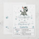 Cute boy baby shower invitation featuring adorable little male zebra with some blue love hearts