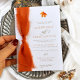 Personalize this elegant, modern, & minimalist rust orange + brown Autumn wedding invitation, featuring a simple watercolor Fall maple leaf and calligraphy script typography on front with right justified alignment for space to add ribbon on the left (makes a perfect belly band!), and initials with wedding date on the back over beautiful black background (color can be changed to fit your theme!). *Ribbon is photographed on invitation for use idea only, and is not included with your order, however, you are welcome to message me to find out where I purchased the chiffon ribbon in the photos! Scroll above to find several other similar variations of this wedding invitation, the matching rsvp card, envelope liner, details card, signage, and full matching stationery collection. ♥ Custom design requests and template questions are always welcome - click the "message button" or email direct: contact@figandlilyco.com. Design is lovingly created by Fig and Lily Studios - sending blessings and thanks for being here with us!