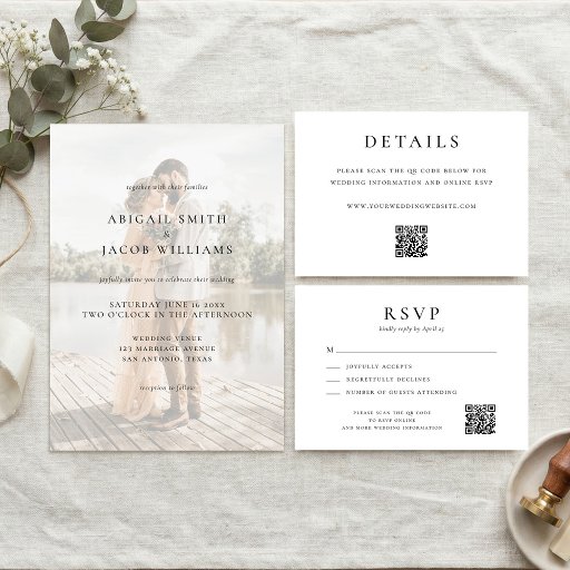 Create your own custom wedding invitations to celebrate your special day. Features all of your wedding details in modern elegant typography alongside two of your favorite pictures.