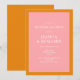 This modern wedding shower invite for the bride and groom features a minimalist aesthetic and a fun color palette of pink and orange.