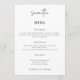 Simple Wedding Menu Card with Guest Name. A great alternative to place cards at your wedding or rehearsal dinner, with your guest's name on their menu. This fully customisable modern design is easy to personalise with your guest name and menu details. You can also change text and background color to match your own wedding color theme if you wish via the Customize Further option.