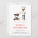 Um simples convite para aniversário de 40 anos de churrasco com uma ilustração de um homem negro cozinhar bife. Ilustrada e projetada por Patricia Alvarez.