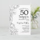 Simples Black White Surprise 50º Convite de aniversário. Design minimalista moderno com sotaques botânicos e letra de escrita tipográfica. Floral, carta de convite perfeita para uma na moda fêmea de comemoração surpresa. Pode ser personalizado para qualquer idade.