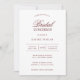 Simples, mínimos convites para almoços de noiva com os detalhes do seu evento em burgundy sobre um fundo branco. A cor do texto e da parte traseira pode ser alterada para qualquer cor que você escolher, clicando no botão "personalizar". Estes convites clássicos são perfeitos para um almoço de outono/outono.