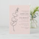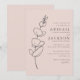Este convite de casamento simples e elegante apresenta uma graciosa linha de cinza de carvão desenhando um eucalipto sprig. Personalize o texto da cinza do carvão com os primeiros nomes da noiva e do noivo em fonte serif e o texto restante em sans serif e script de escrita manual em um fundo rosa-pincelado. A parte traseira da placa é robusta e robusta.