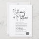Linhas limpas modernas texto simples em preto e branco deixado variava verticalmente e negrito em convites de casamento para escrituras de caligrafia. Perfeito para um casamento simples e moderno. Edite este convite com seus próprios nomes, detalhes do casamento, código de resposta RSVP e sua própria foto de casais no verso. Outros itens correspondentes estão disponíveis ou podem ser criados mediante solicitação. Projetado por www.mylittleedenweddings.com