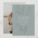 Simples e elegante, este verde natural, casamento Salve a data o convite apresenta um tronco botânico desenhado à mão florescendo atrás de uma bela tipografia na frente. Personalize com sua foto de casal favorita no verso.