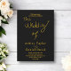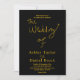 Este elegante convite de casamento preto e dourado é perfeito para um casamento moderno. o simples design apresenta uma elegante caligrafia de ouro num fundo preto.