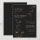 Um simples e elegante convite para o casamento floral negro e dourado é perfeito para qualquer cerimônia elegante e sofisticada. Este elegante e elegante design floral de quadro floral de ouro é perfeito para o casal de tendências e na moda. Personalize este design com sua própria mensagem e informações personalizadas. Todas as designs são impressas.