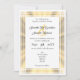 Um simples convite de casamento de ouro metálico falso contemporâneo e um padrão listrado branco, inspirado no período Art Deco, um design de luxo para o seu dia especial.