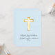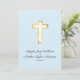 Um convite simples e moderno para uma cerimônia de casamento baseada nas tradições cristãs. O design apresenta uma cruz de ouro simulada sobre um fundo azul-claro modesto. O design limpo e aberto proporciona uma elegância subestimada a este convite. Como a cruz simboliza a fé dos casais com Deus.