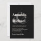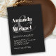 Projete um senso de simplicidade moderna com este simples convite de casamento na moda na design da popular escolha de cores - preto com texto de náusea leve. Os nomes da noiva e do noivo são apresentados em tons de negrito com um grande na moda e juntando-se aos seus nomes. Este texto contemporâneo é acompanhado de uma simples carta, com os pormenores do seu dia especial. O resultado é um olhar minimalista saboroso com talento moderno e foco na noiva e no noivo e seu esquema de cores escolhido. Personalize o texto com seus detalhes no modelo de texto fácil de usar.