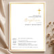 Simples Convocação para Batismo Cruzado Dourado Moderno | Elegante Modelo de Cerimônia Religiosa Celebra o dia sagrado de seu filho com este Simples Convite Dourado de Batismo. Com uma cruz de ouro minimalista e uma tipografia moderna limpa, esta modelo personalizável é perfeita para cerimônias de batismo cristão, católico e protestante. Personalize com o nome do seu filho, a data do batismo, a localização da cerimônia e os detalhes de RSVP. Uma escolha eterno e elegante para bebês, meninas ou celebrações neutras em relação ao gênero. Disponível como convite impresso ou download instantâneo para atender às suas necessidades de planejamento de eventos. Clique em "Personalizar este modelo" para adicionar facilmente os detalhes do evento hoje mesmo!