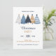 Design simples com árvores de Natal modernas, azuis e falsas, Convite de festas de Natal sobre fundo branco. Personalize facilmente o texto. - Kate Eden Art